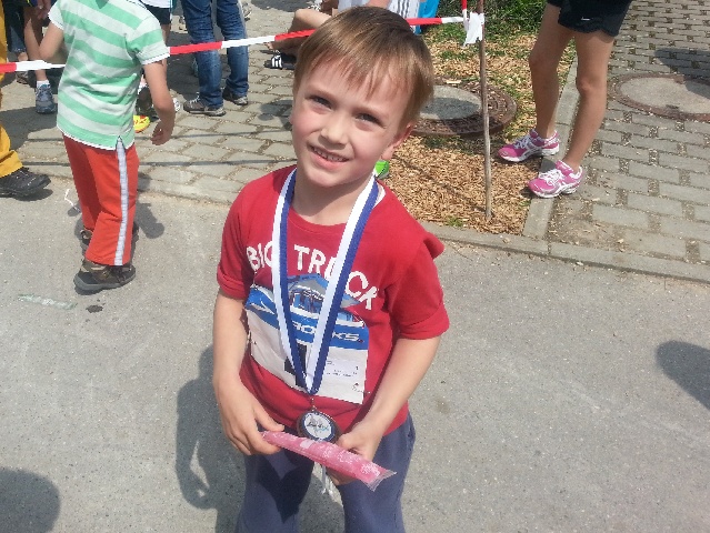 bei dem Torsten eine Medaille gewonnen hat und nach dem Zieleinlauf ein Eis bekam.