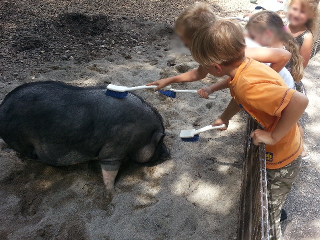 Torsten pflegte die Schweine im Tiergarten Ulm